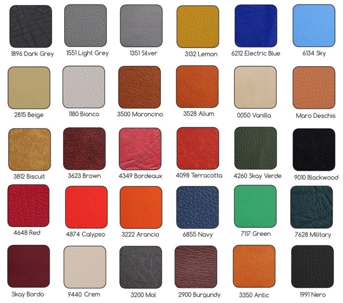 Piele artificială cu suport din amestec de bumbac - poliester cu peliculă compactă si film de PVC spongios. Produs moale cu aparență de piele, cu mare rezistență la tracțiuni, la zgâriere si la frecare, fără miros de solvenți organici. Recomandat atât pentru tapițerie de mobilier cât și pentru tapițerie de automobile, marochinărie si îmbrăcăminte. Tip stofa: material piele ecologică. Spații destinate: birou, acasă, cinematograf, salon, amfiteatru, alte spații publice. Culorile pot suferi ușoare diferențe de la un lot la altul.