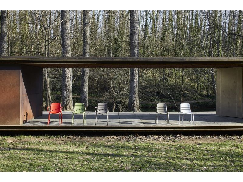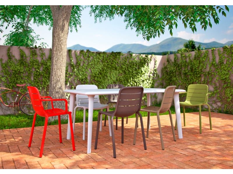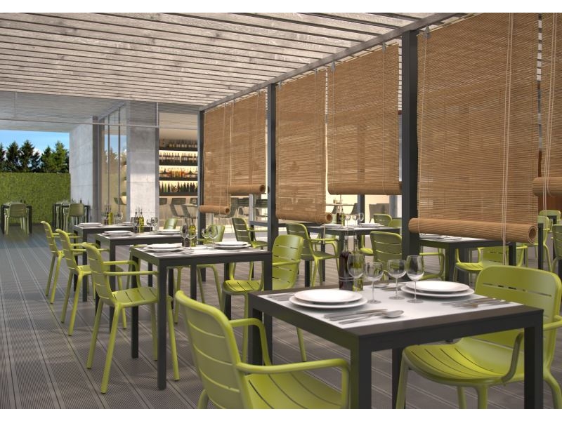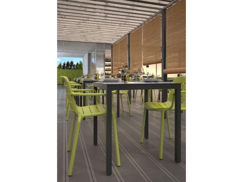 Colectia de scaune pentru exterior obtinute printr-o singura injectare a doua materiale, polipropilena ranforsata si fibra de sticla face ca produsul sa fie rezitent, sa poate fi folosit cu succes ca scaun terasa sau in industria Horeca; hotel, restaurant, cantina sau cafenea.