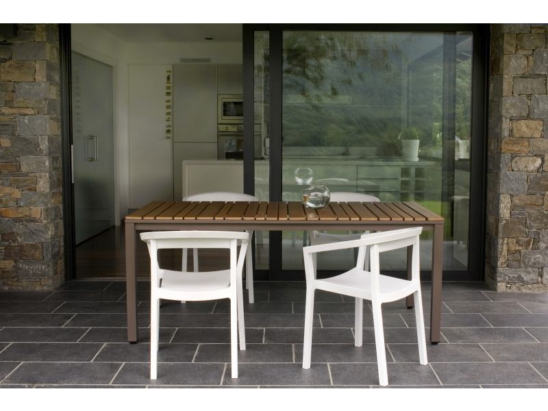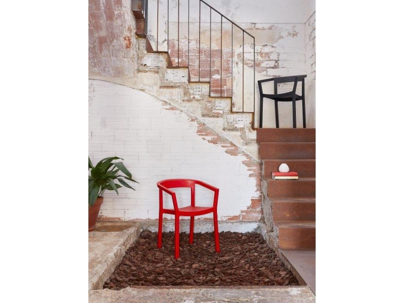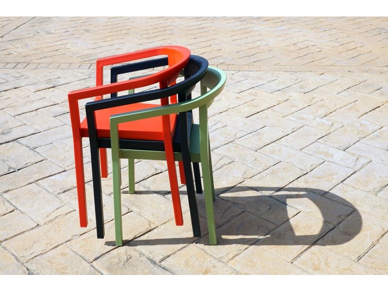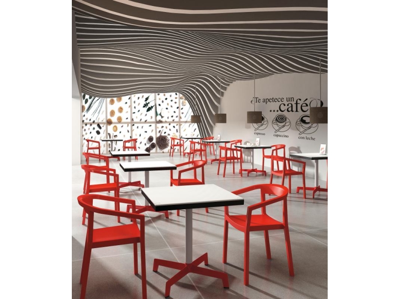 Colectia de scaune pentru exterior obtinute printr-o singura injectare a doua materiale, polipropilena ranforsata si fibra de sticla face ca produsul sa fie rezitent, sa poate fi folosit cu succes ca scaun terasa sau in industria Horeca; hotel, restaurant, cantina sau cafenea.