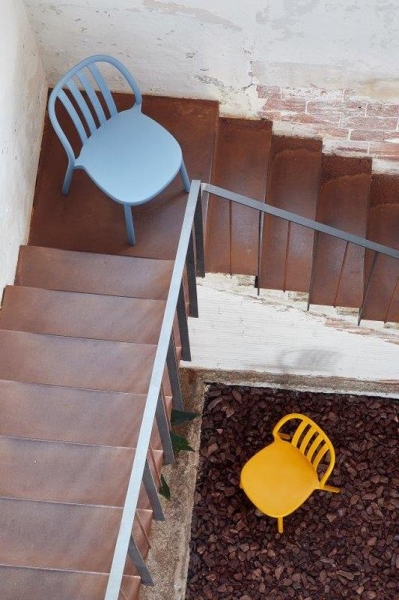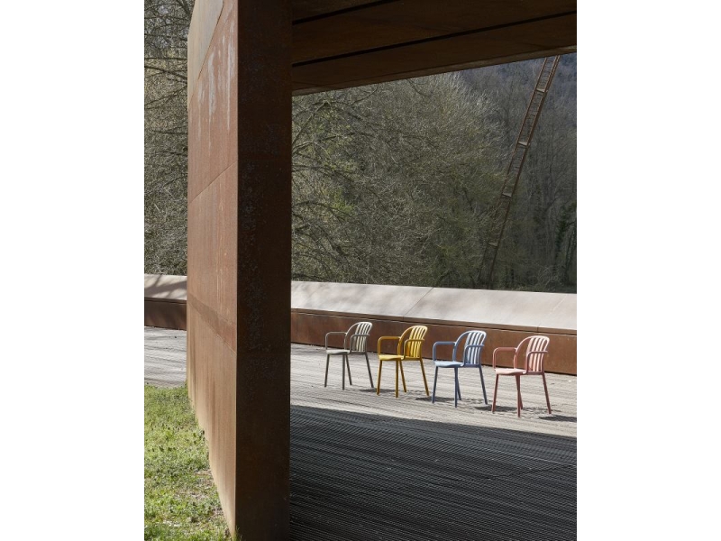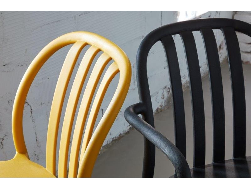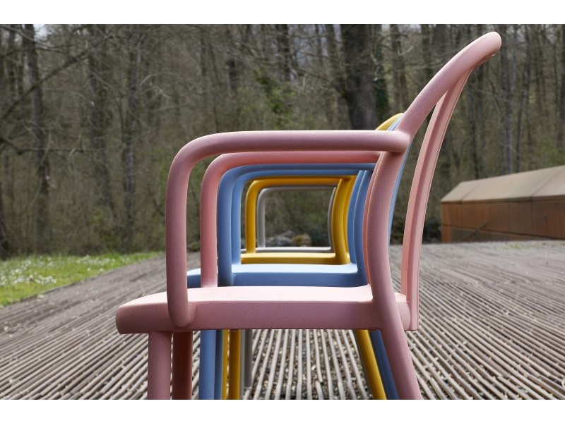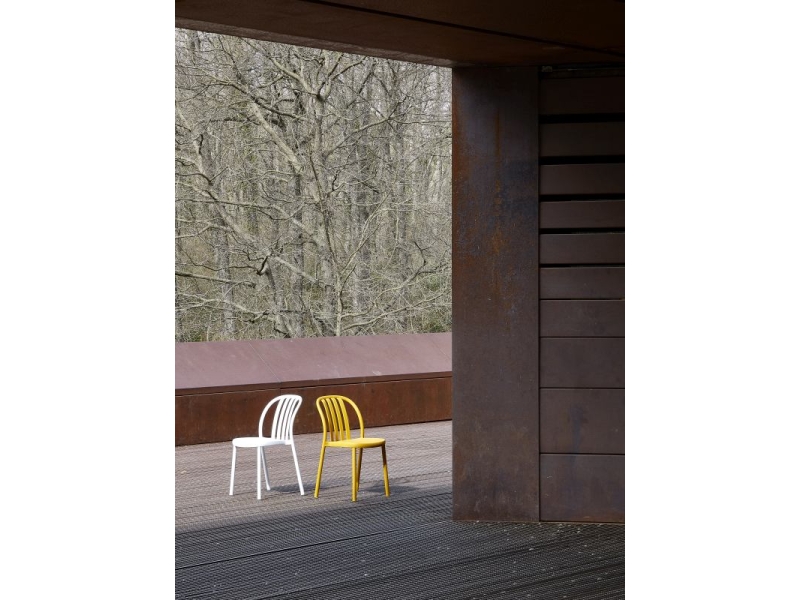 Colectia de scaune pentru exterior obtinute printr-o singura injectare a doua materiale, polipropilena ranforsata si fibra de sticla face ca produsul sa fie rezitent, sa poate fi folosit cu succes ca scaun terasa sau in industria Horeca; hotel, restaurant, cantina sau cafenea.