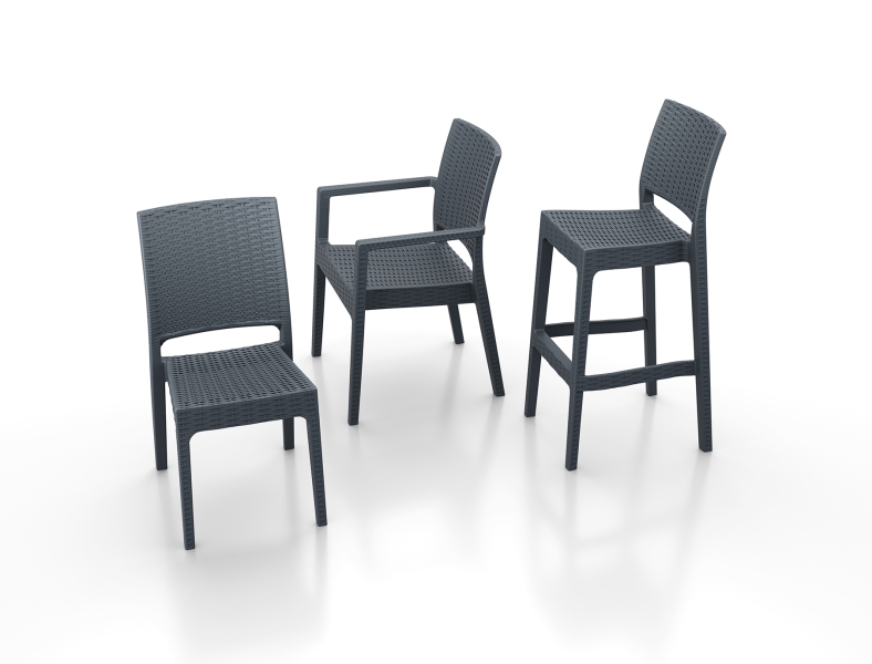 Colectia de scaune pentru exterior obtinute printr-o singura injectare a doua materiale, polipropilena ranforsata si fibra de sticla face ca produsul sa fie rezitent, sa poate fi folosit cu succes ca scaun tersasa sau in industria Horeca; hotel, restaurant, cantina sau cafenea.
