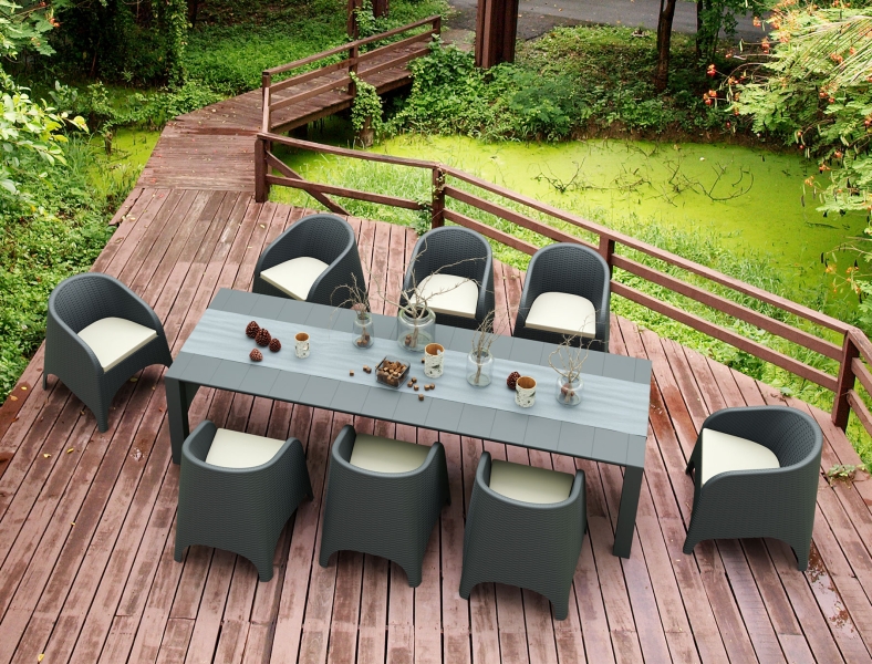 Colectia de scaune pentru exterior obtinute printr-o singura injectare a doua materiale, polipropilena ranforsata si fibra de sticla face ca produsul sa fie rezitent, sa poate fi folosit cu succes ca scaun tersasa sau in industria Horeca; hotel, restaurant, cantina sau cafenea.