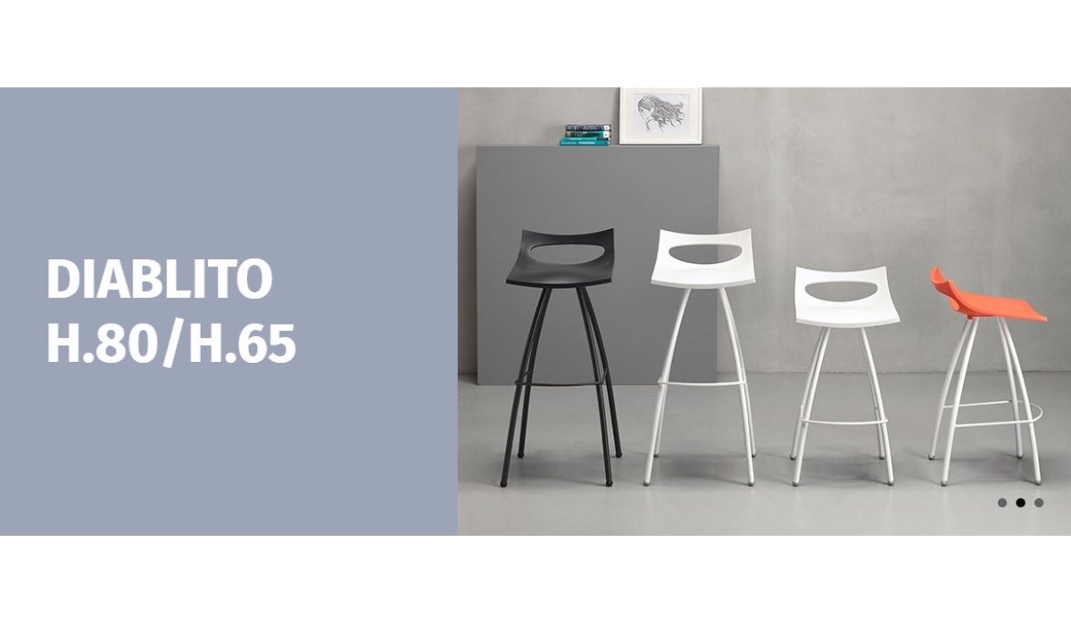Scaunul Bar Diablito este realizat din scoica din Tehnopolimer (disponibila in cinci culori) si cadru metalic disponibil in doua variante de inaltime: 65 cm sau 80 cm, care poate fi in nuantele Chromed, Anthracite Grey sau Linen.