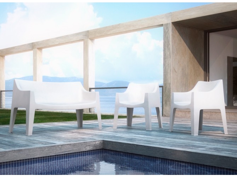 Canapeaua Coccolona este din polipropilena (5 nuante) si este suprapozabila si foarte stabila. Aceasta este disponibila in mai multe culori si se potriveste perfect pentru utilizare in exterior.