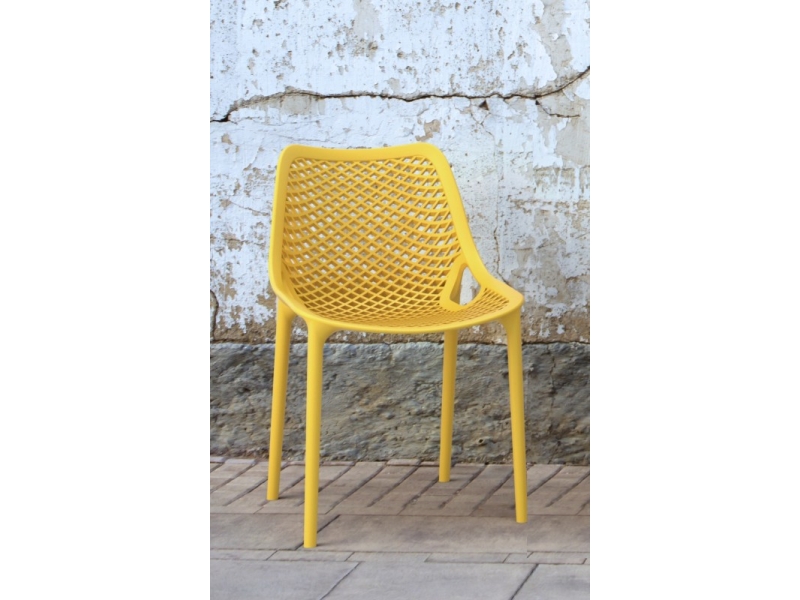 Scaunul AIR este un scaun pentru exterior sau interior. Obtinut printr-o singura injectare a doua materiale, polipropilena ranforsata si fibra de sticla face din scaunul Air un scaun rezitent care poate fi folosit in industria Horeca; hoteluri, restaurante, cantine.