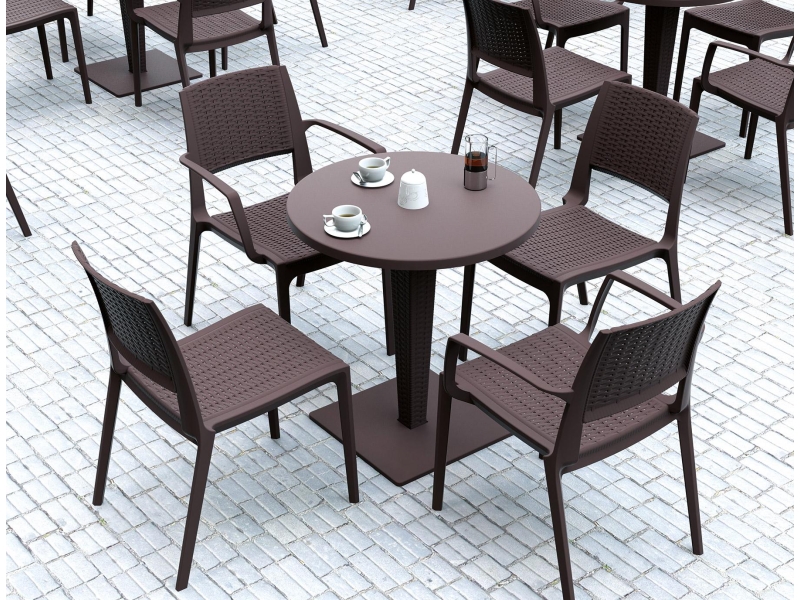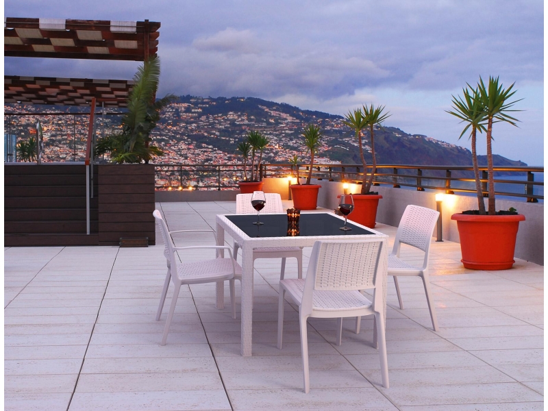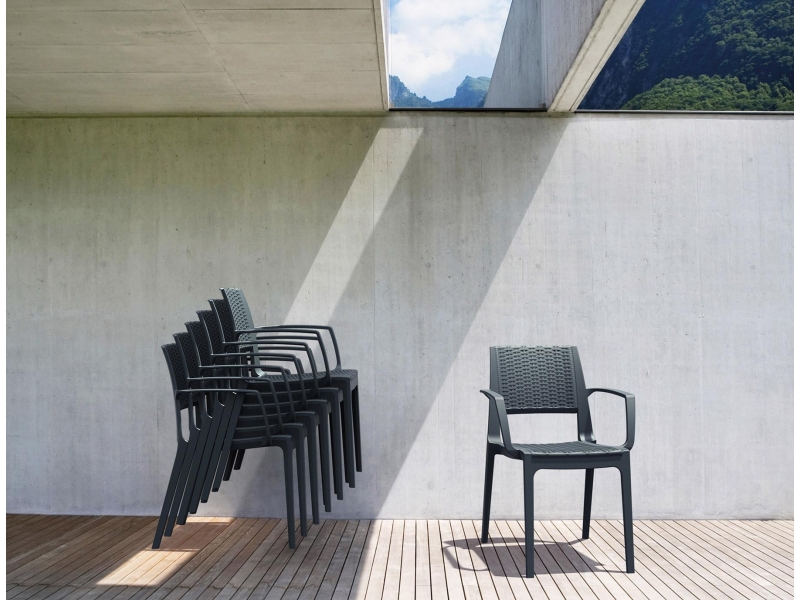 Scaunul Capri este stivuibil și fabricat din polipoprilena armată cu fibra de sticla durabilă, rezistentă la intemperii. Cadrul nemetalic nu se va desface, rugini sau deteriora. Este protejat UV ceea ce asigură că culorile nu se vor estompa. Pentru uz interior și exterior